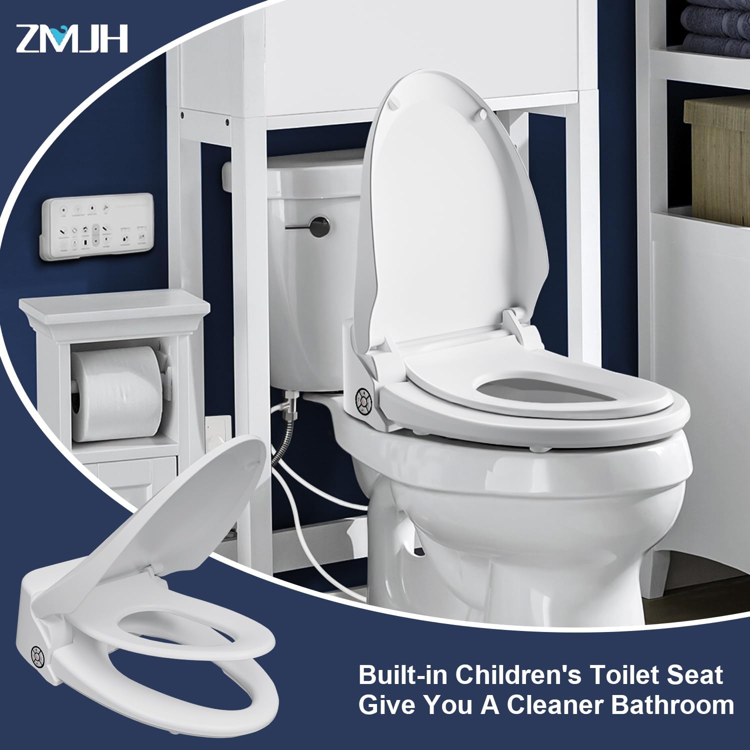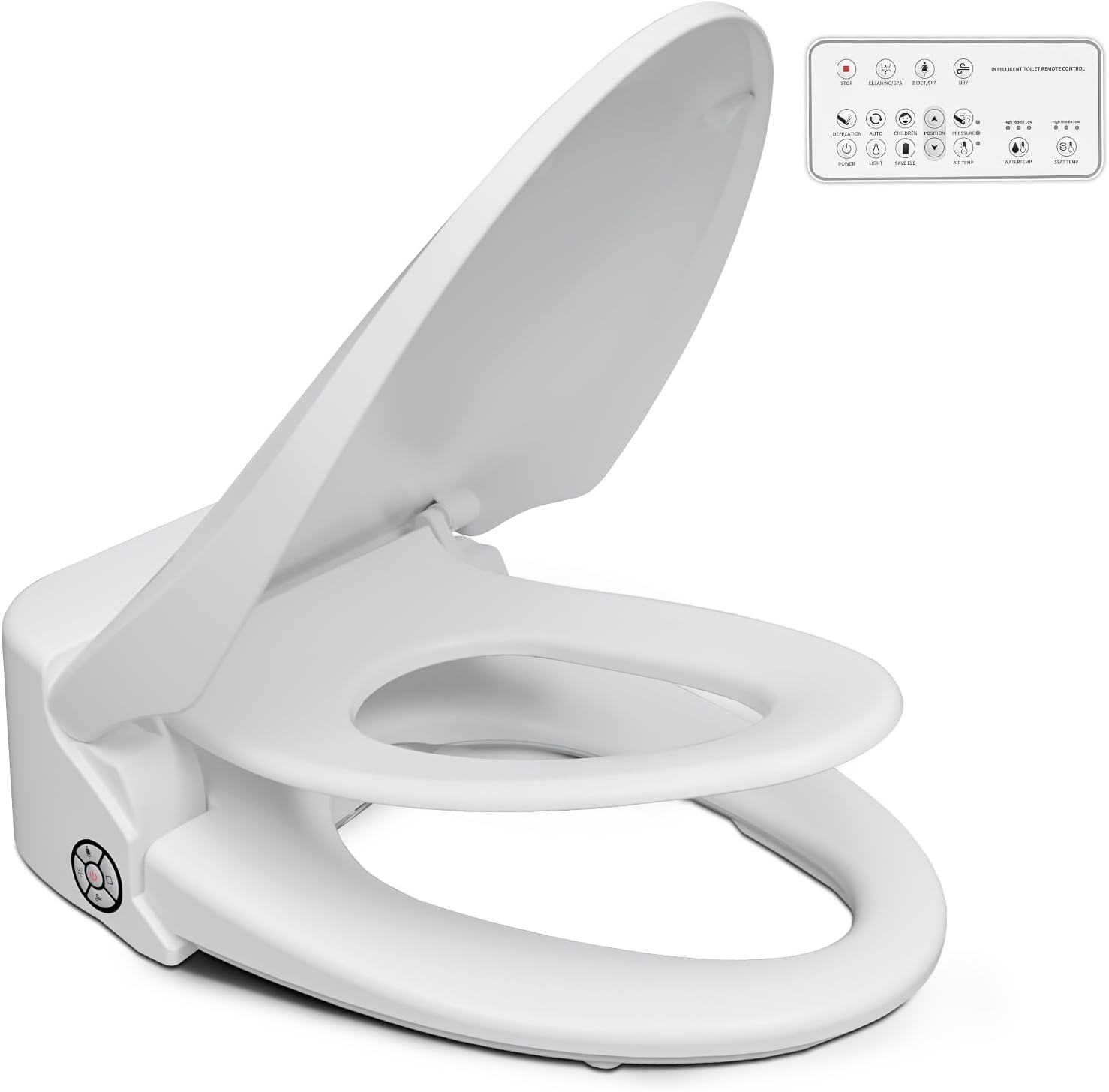 A102DS-W (Round) Bidet Toilet Seat, Electric Smart Heated Seat with Slow Closes, Vortex Wash, Warm Dryer, Rear and Front Wash, Warm Water, Remote Control, and Night Light, White