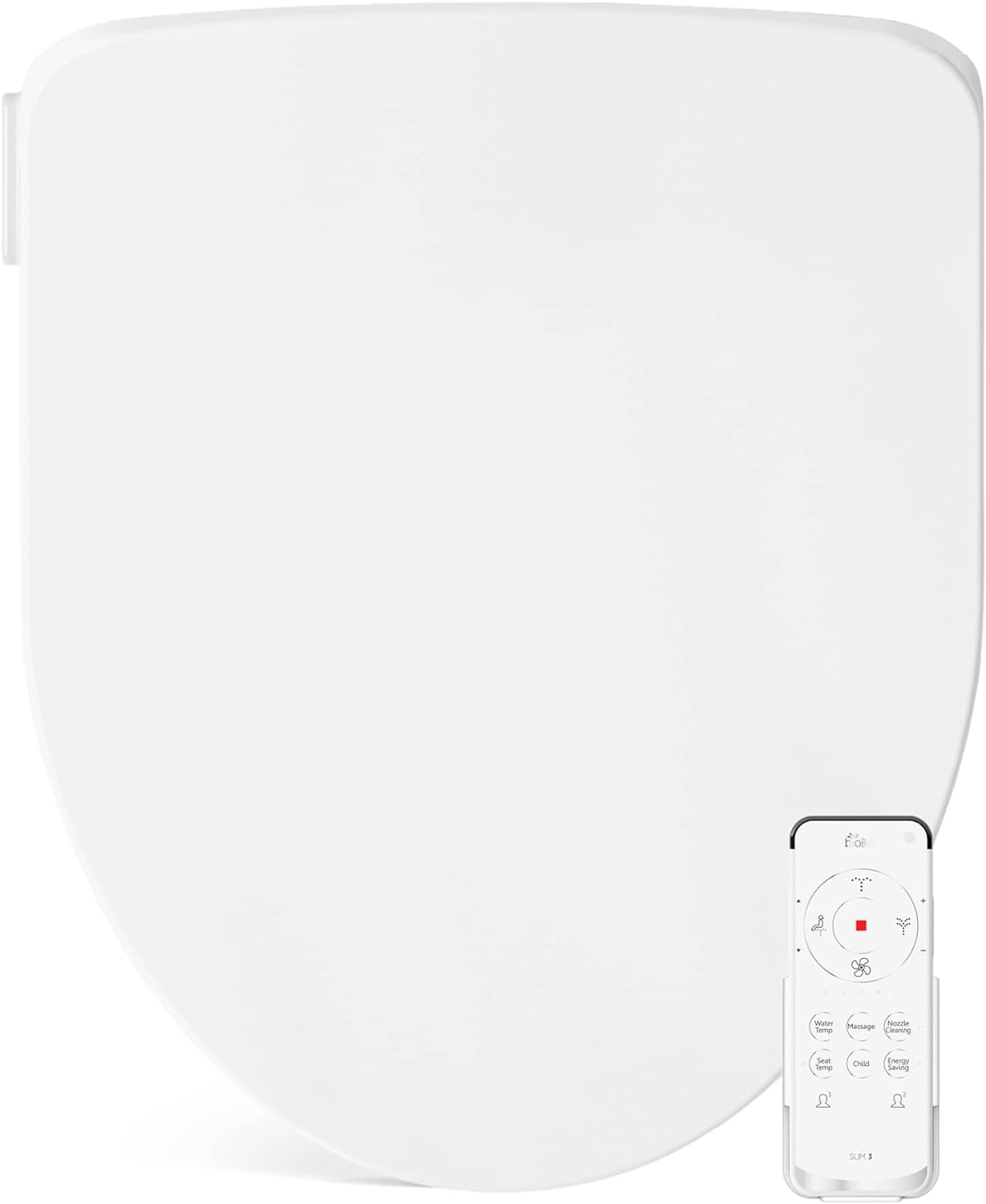 • Round Slim Two Smart Toilet Seat in Round White with Stainless Steel Self-Cleaning Nozzle, Nightlight, Turbo Wash, Oscillating and Fusion Warm Water Technology with Wireless Remote