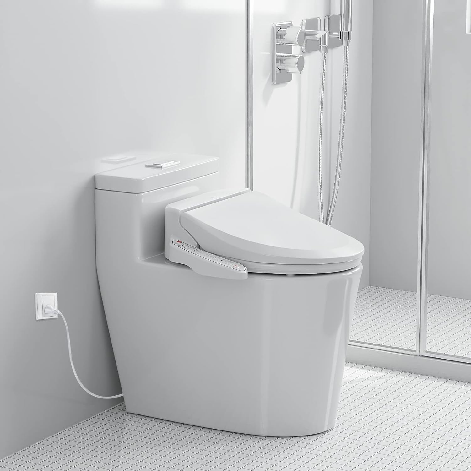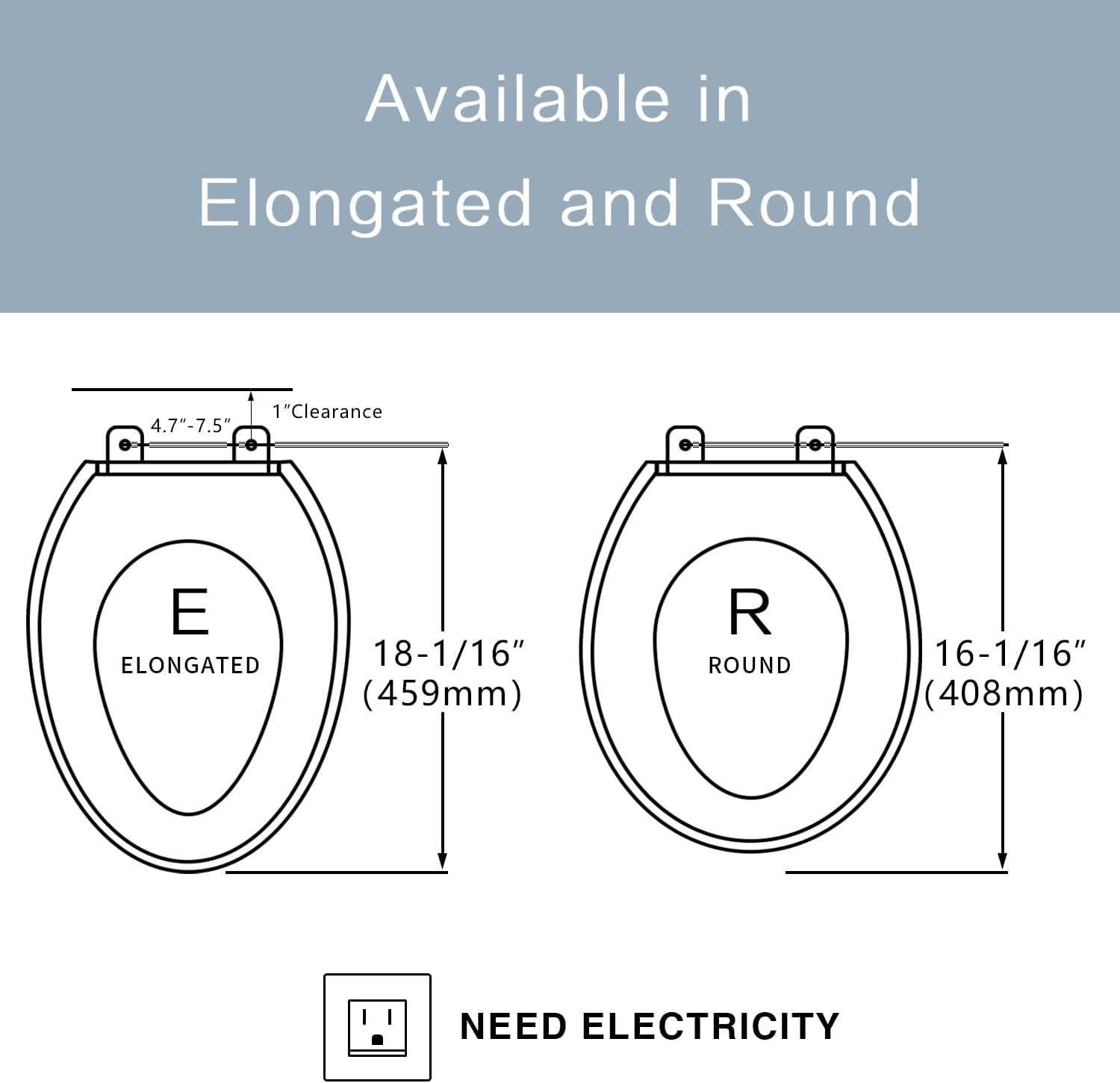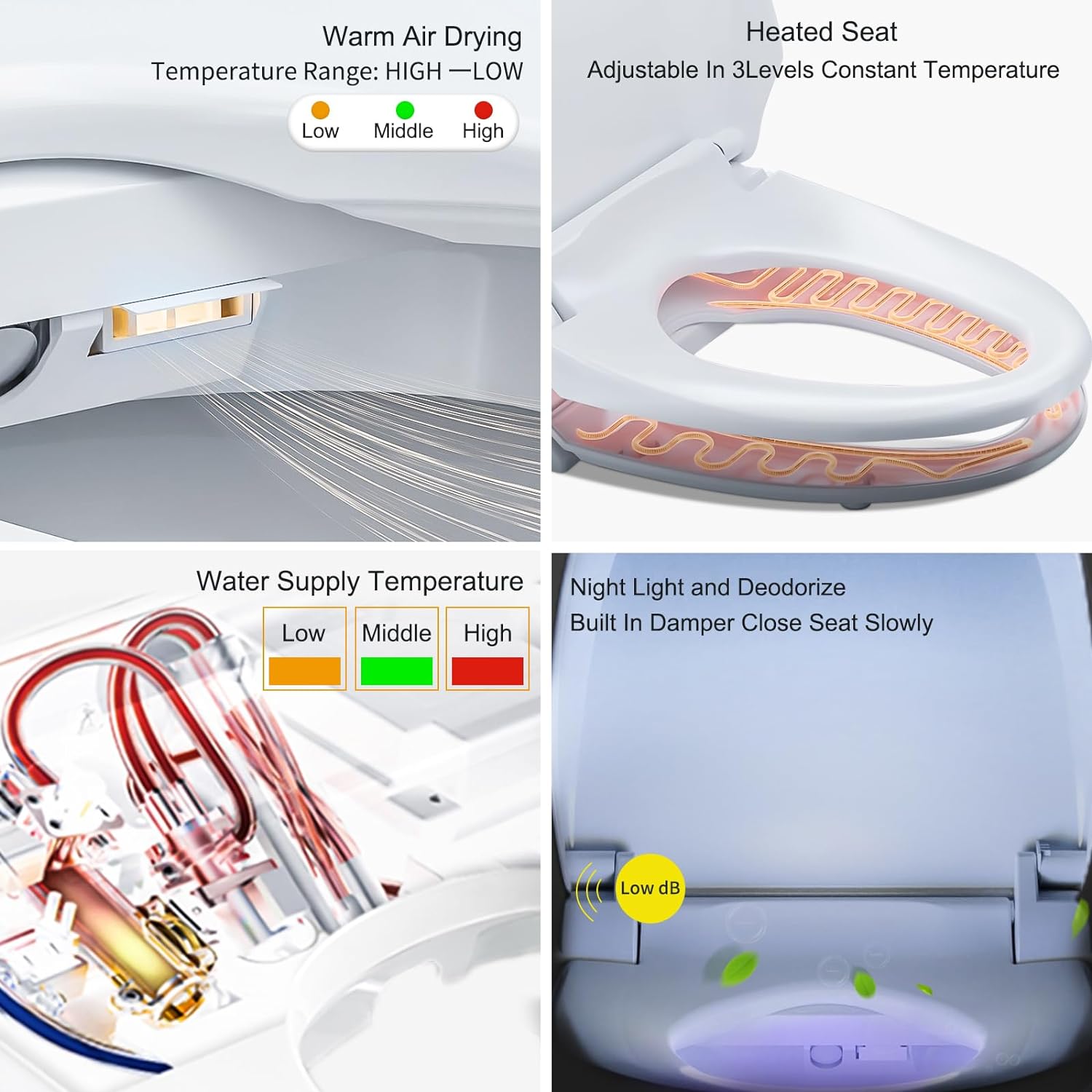 • Elongated Bidet Toilet Seat, Elongated Smart Unlimited Warm Water, Vortex Wash, Electronic Heated, Warm Air Dryer, Rear and Front Wash, LED Light, Need Electricity, White